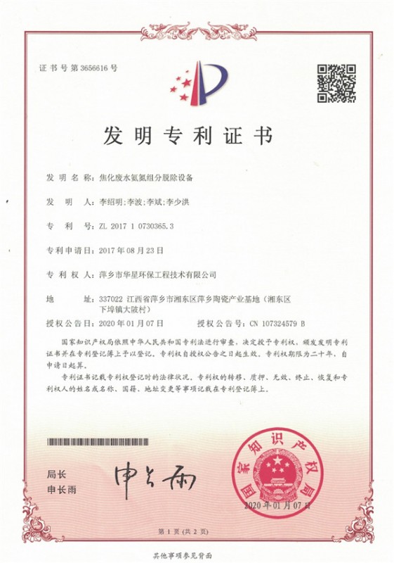 - 發(fā)明專(zhuān)利——焦化廢水氨氮組分脫除設(shè)備