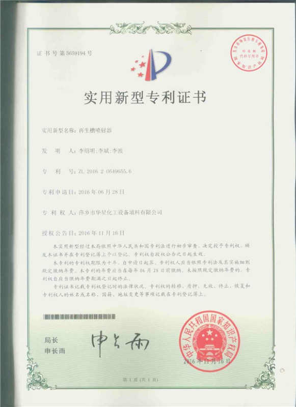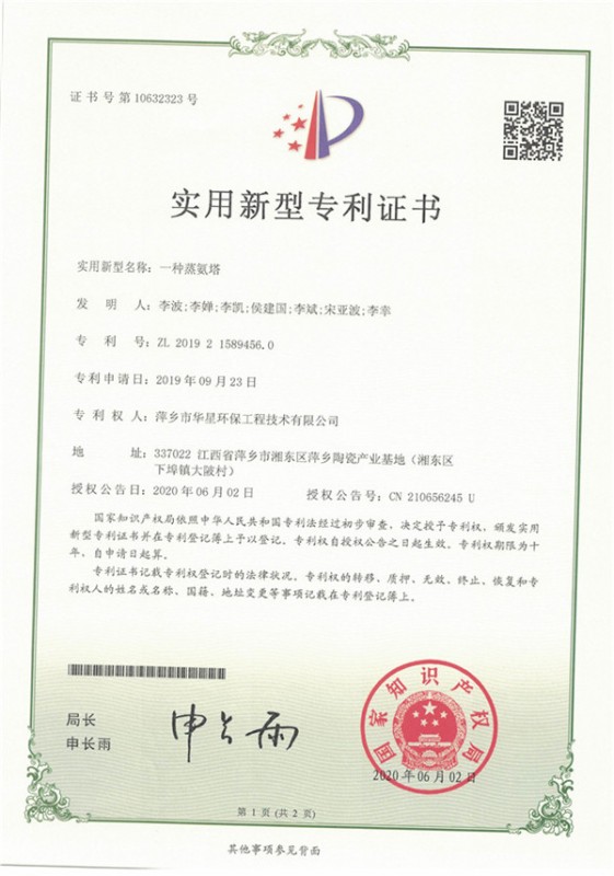 • 一種脫硫氧化再生塔-實(shí)用新型專利證書_