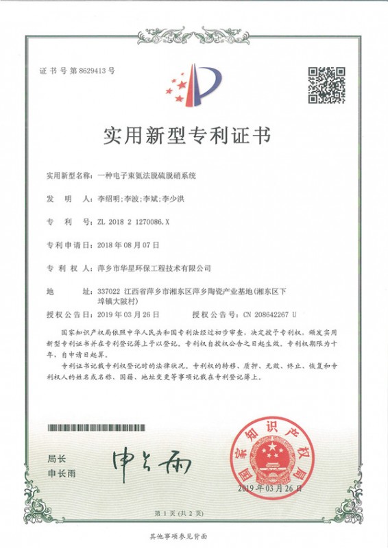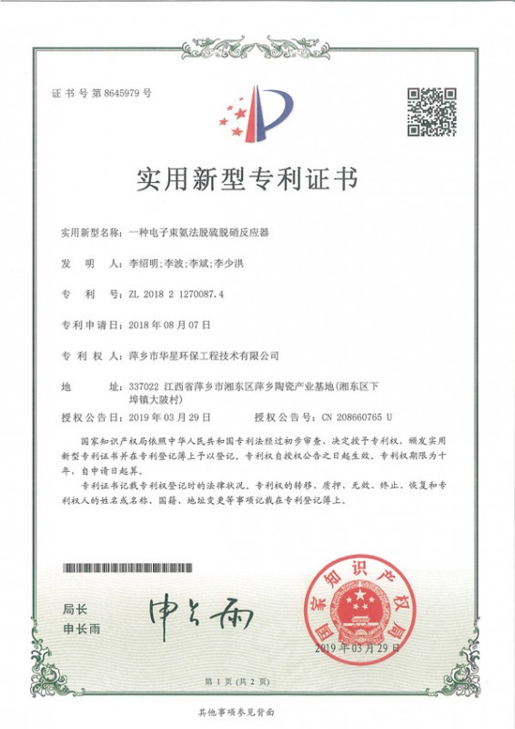 - 一種電子束氨法脫硫脫硝反應器-實用